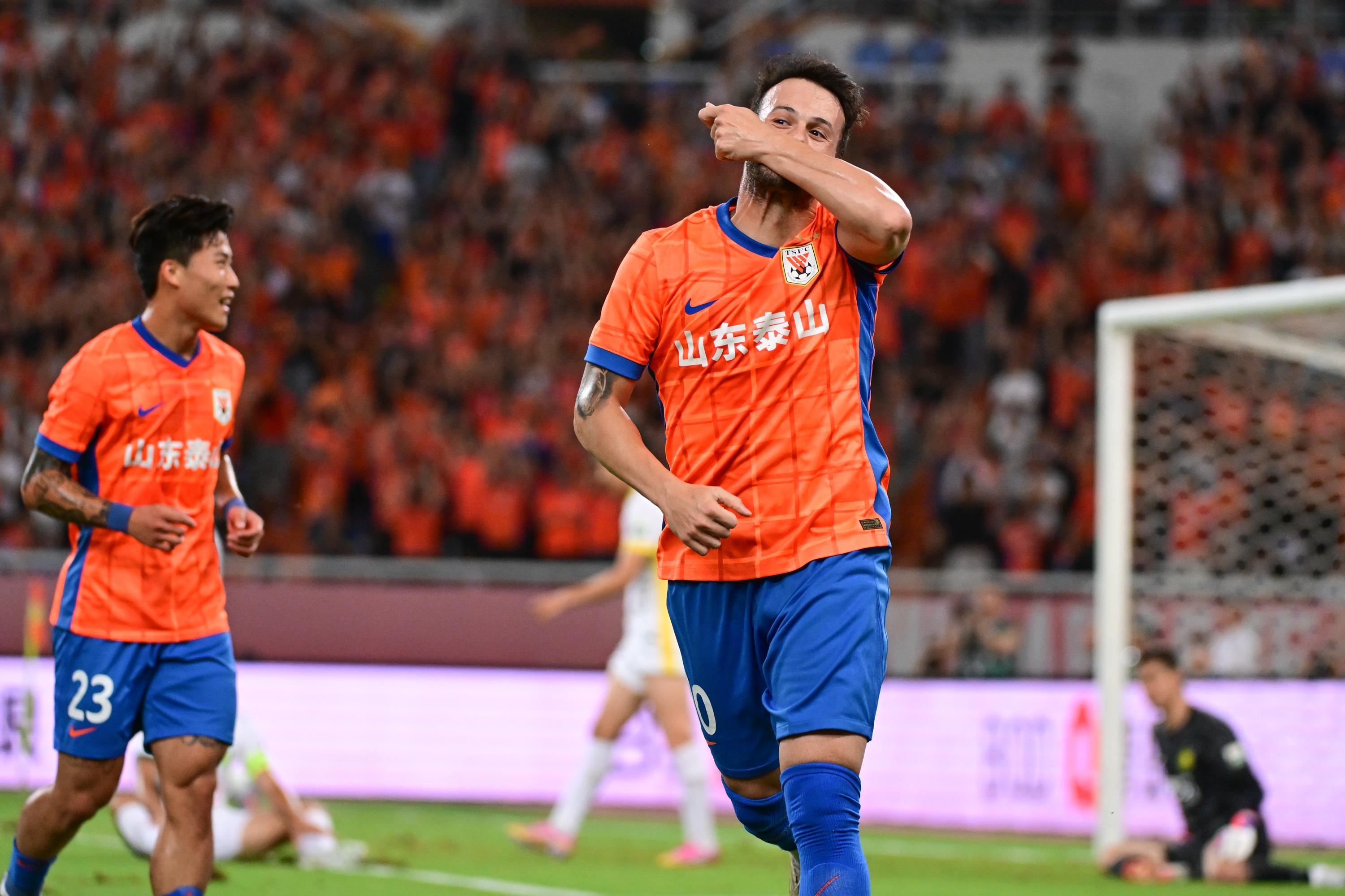 雷速体育8月31日讯 中超联赛第23轮,山东泰山在主场迎来与北京国安的京鲁大战。上半场比赛结束,山东泰山4-0领先北京国安。